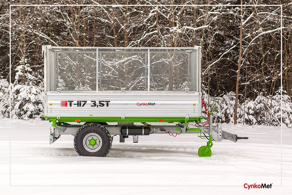 Jednoosiowa przyczepa T-117 wybierana najczęściej jako urządzenie uzupełniające w profesjonalnych gospodarstwach rolnych oraz zakładów komunalnych. Cynkowane ogniowo ściany, rama nośna i belka tylna, podłoga z jednego arkusza grubości 3mm gruntowana zanurzeniowo i malowana, gwarantuje niezawodność, trwałość przez wiele lat użytkowania. Przyczepa charakteryzuje się dużą pojemnością i doskonałą zwrotnością. Niewielka masa własna, prosty system otwierana bort pojedynczo lub zespołowo do góry lub do dołu, umożliwia wywrót w trzech kierunkach.